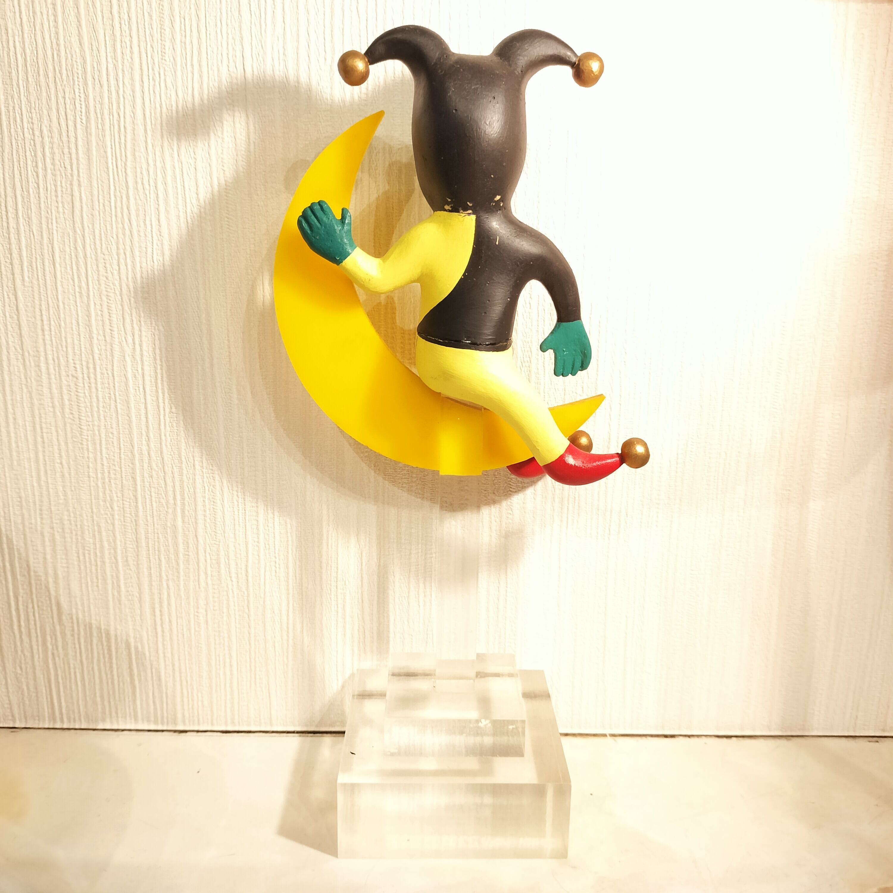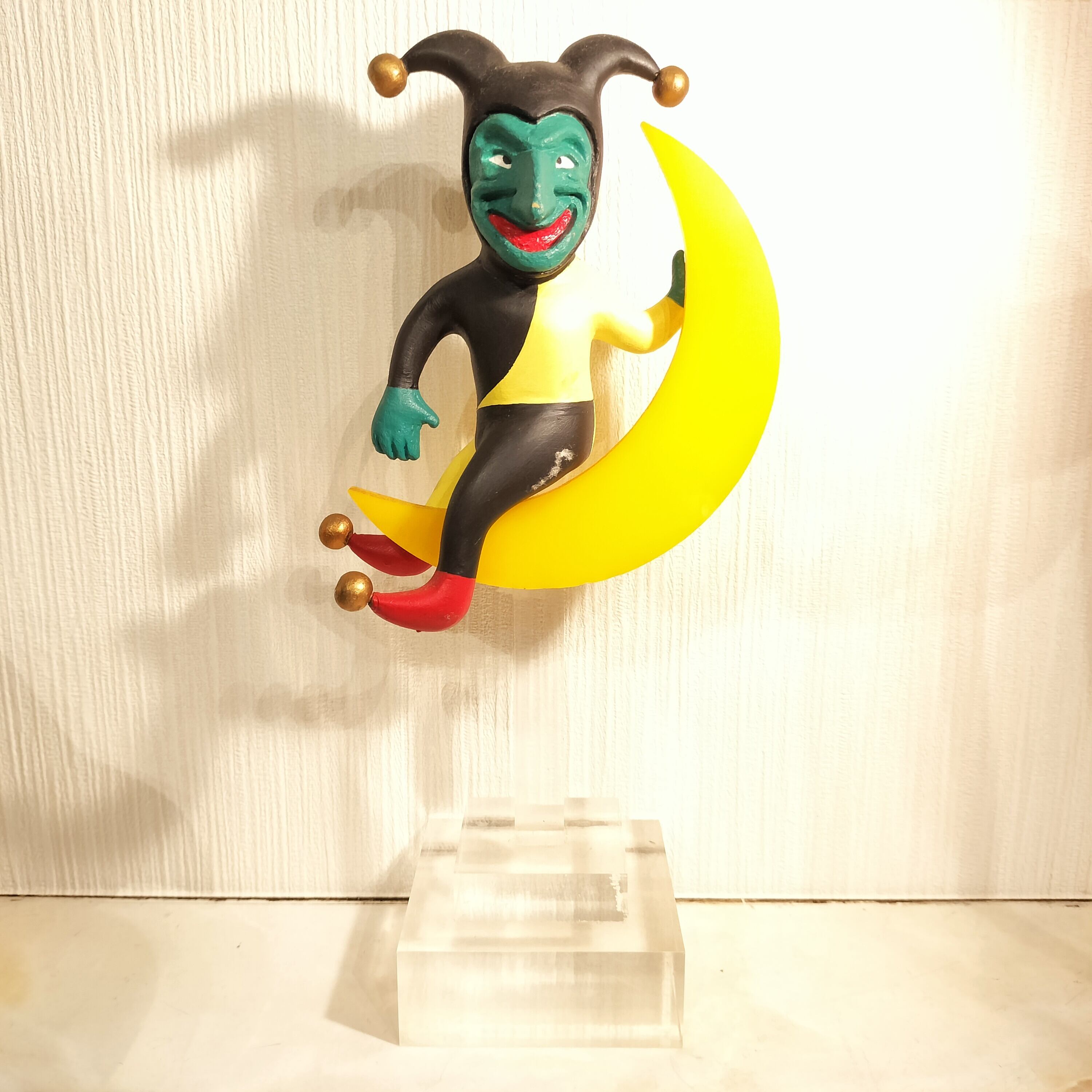 ピエロは木製、月と台座はアクリル製のような素材感です。