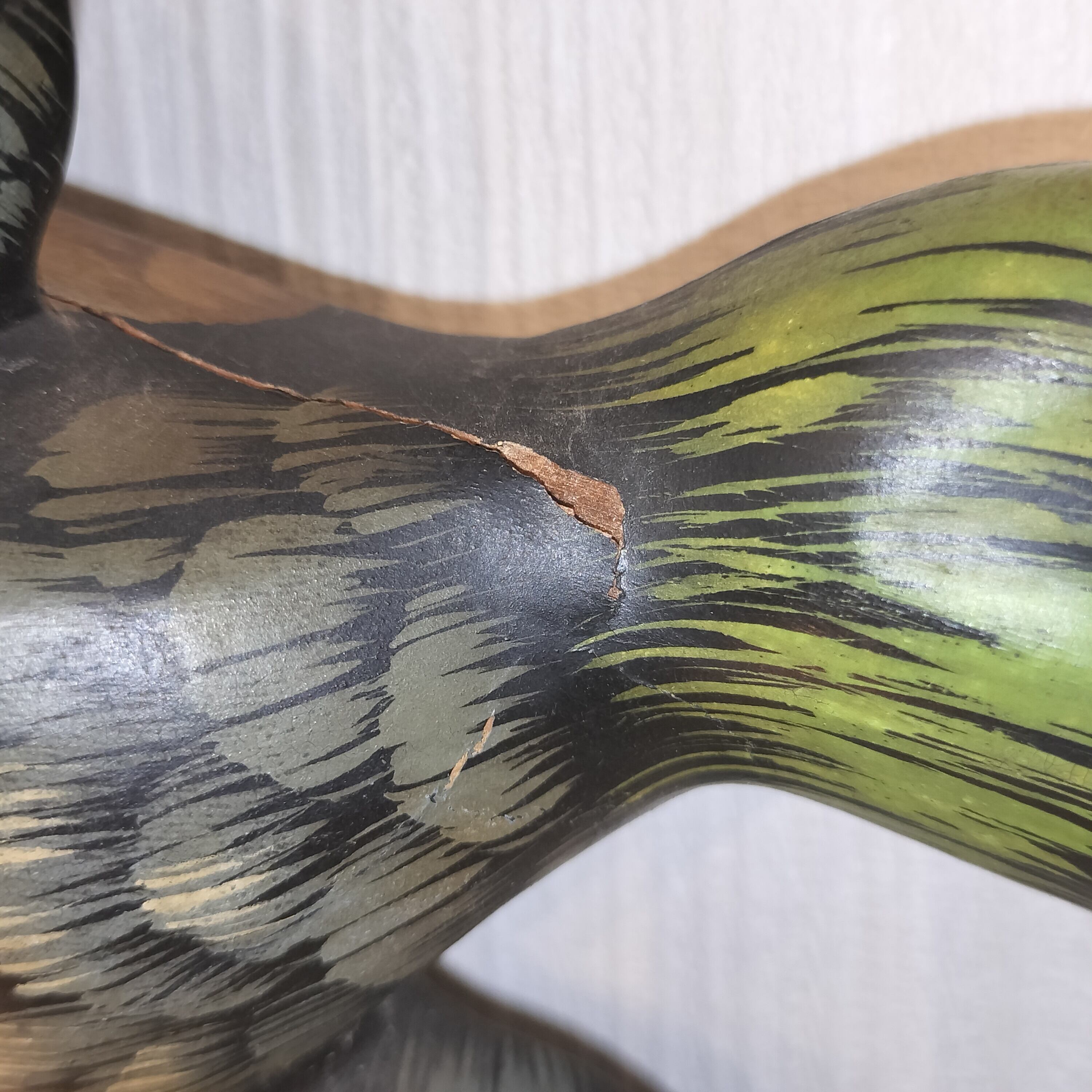 首から背にかけてヒビ割れがございます。