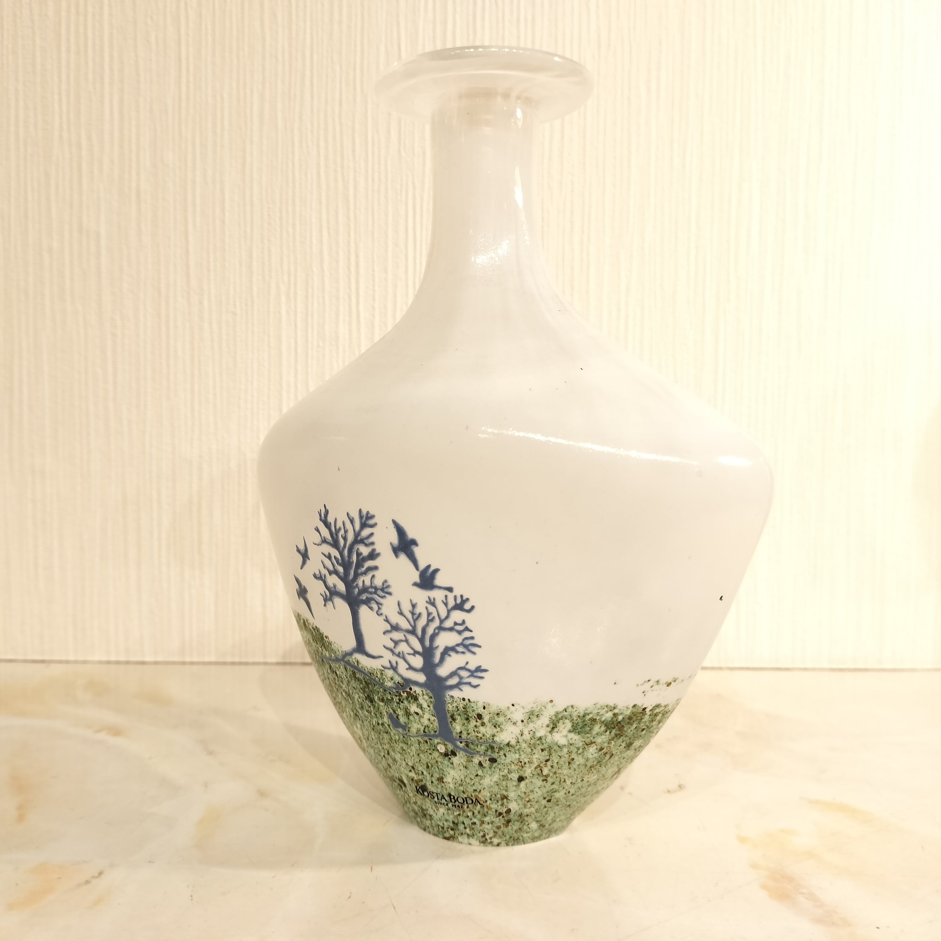 ガラスに描かれたとは思えないほど美しい仕上がりになっている作品となっており、Kosta Boda社の歴史とともに、スウェーデンのガラスアートの象徴的存在です。