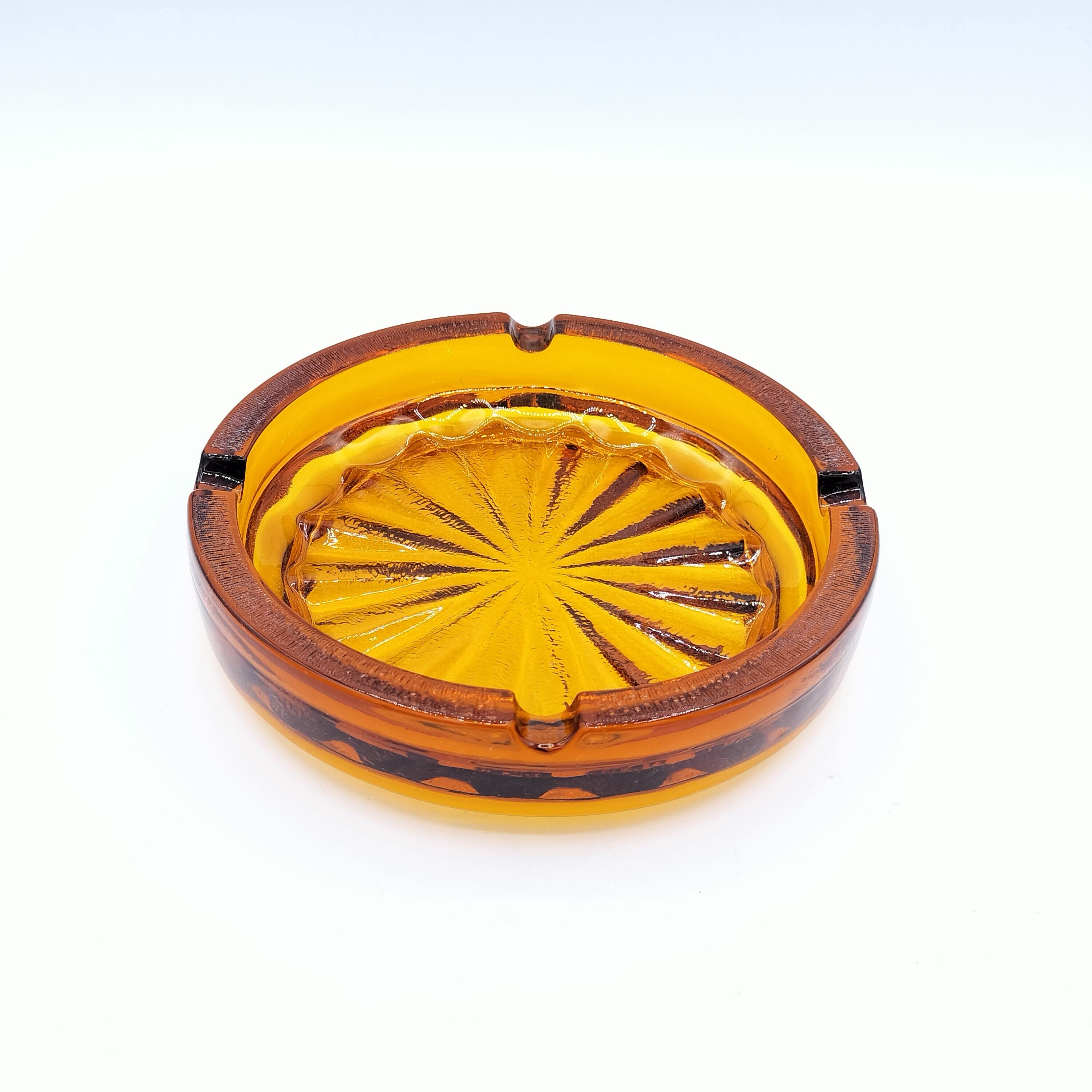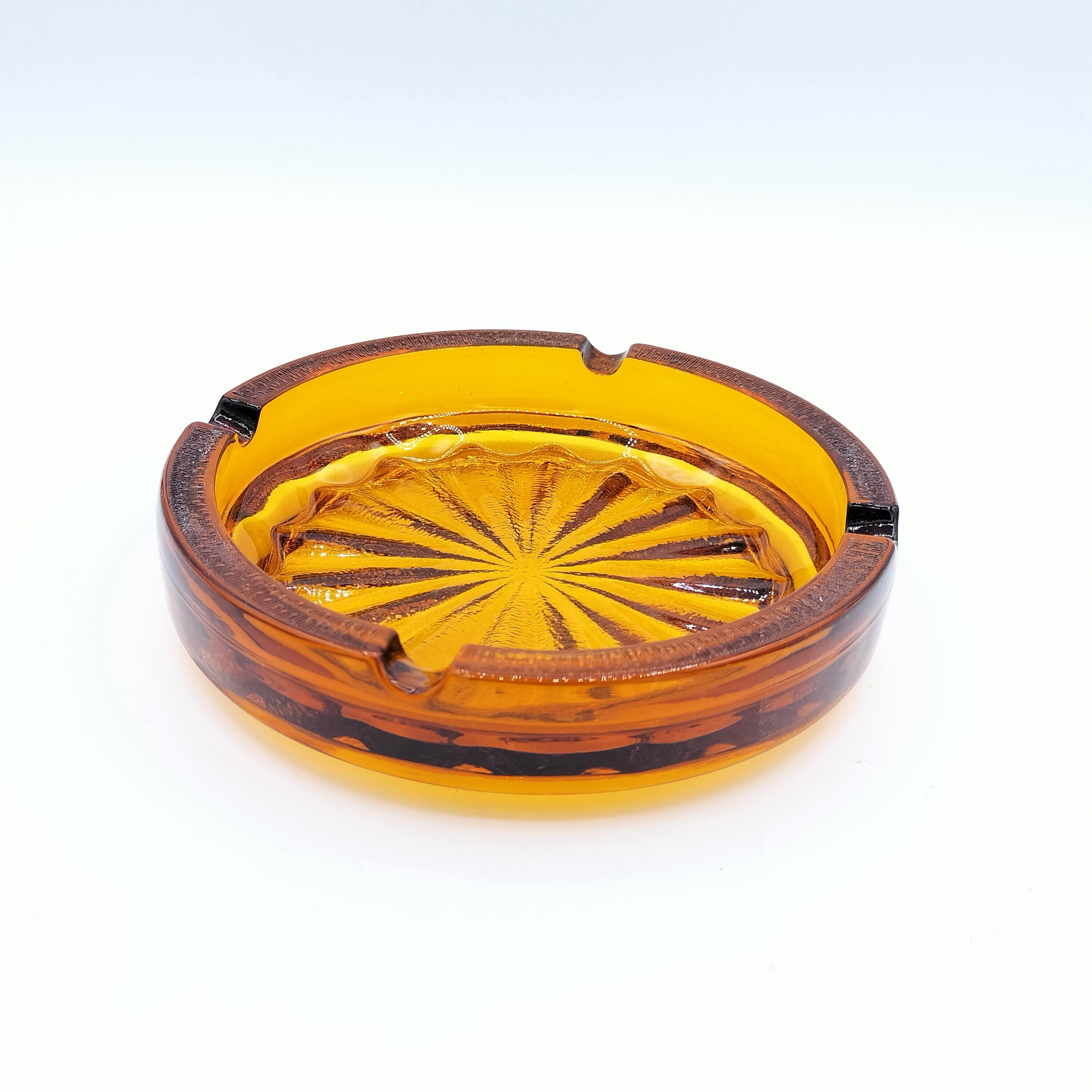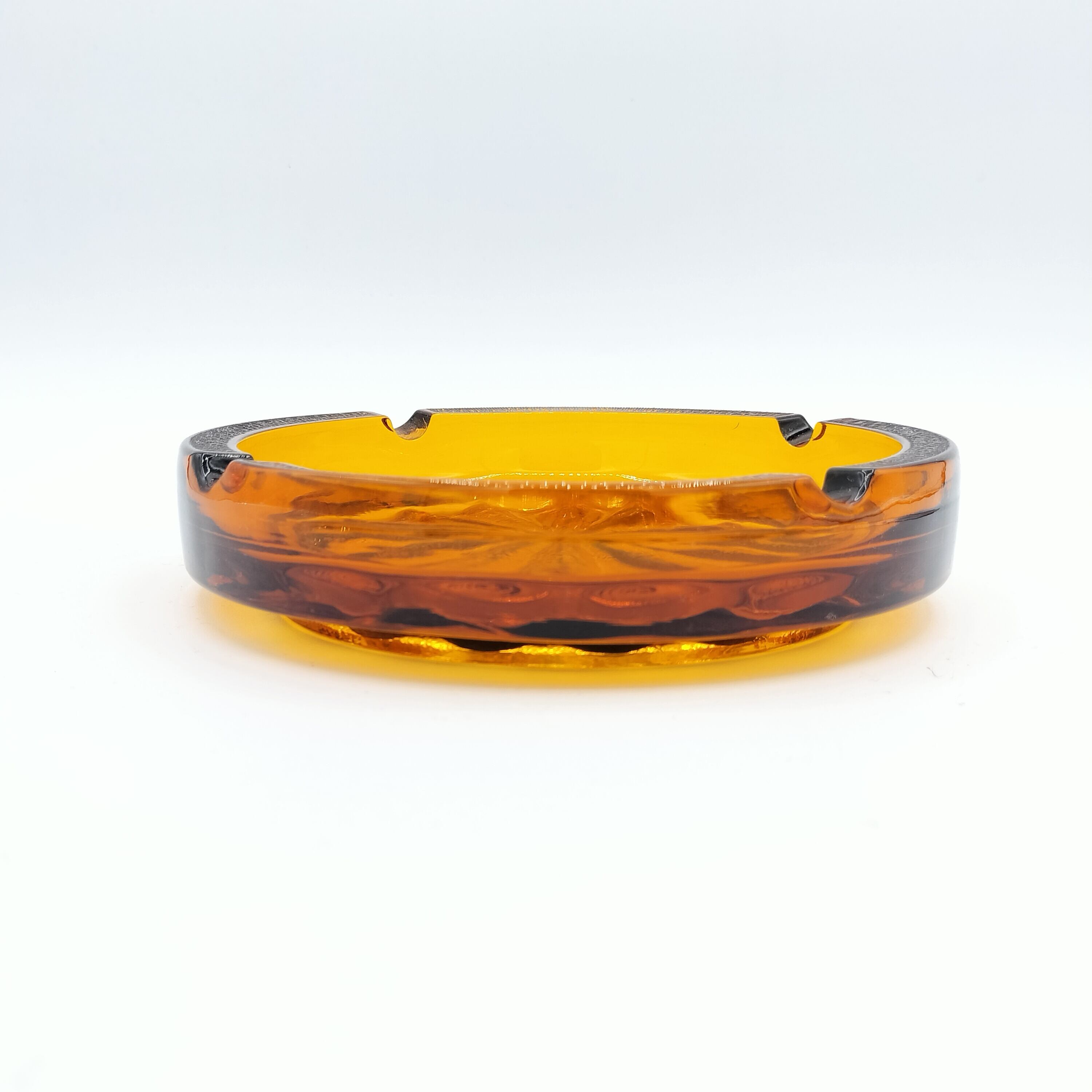 アンバー色のガラスで出来たアッシュトレイです。