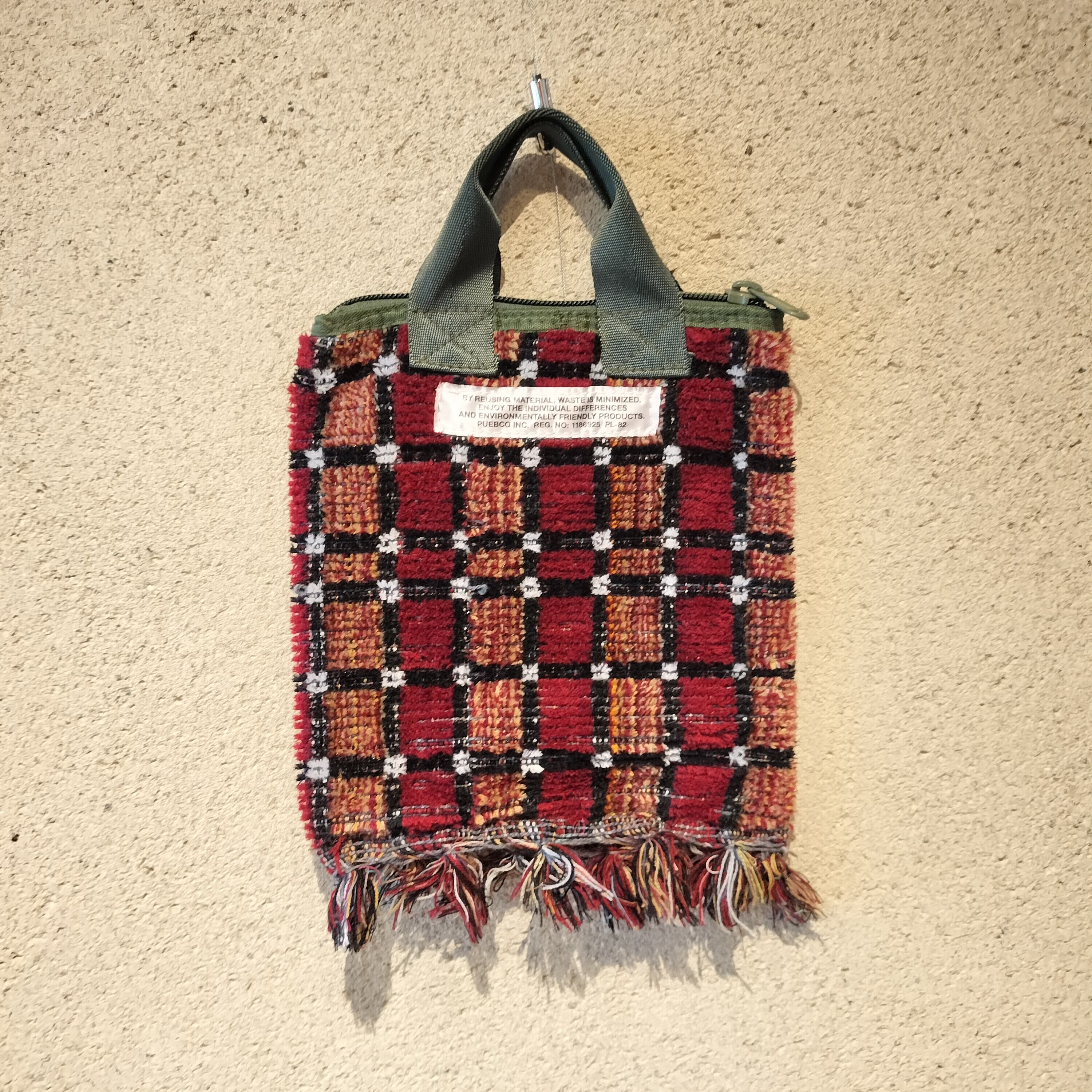 PUEBCOというブランドのものなのですが、どうやら、農村地域の人々に10色程度の糸を渡して、その人のセンスで織った生地で作っているそうです。