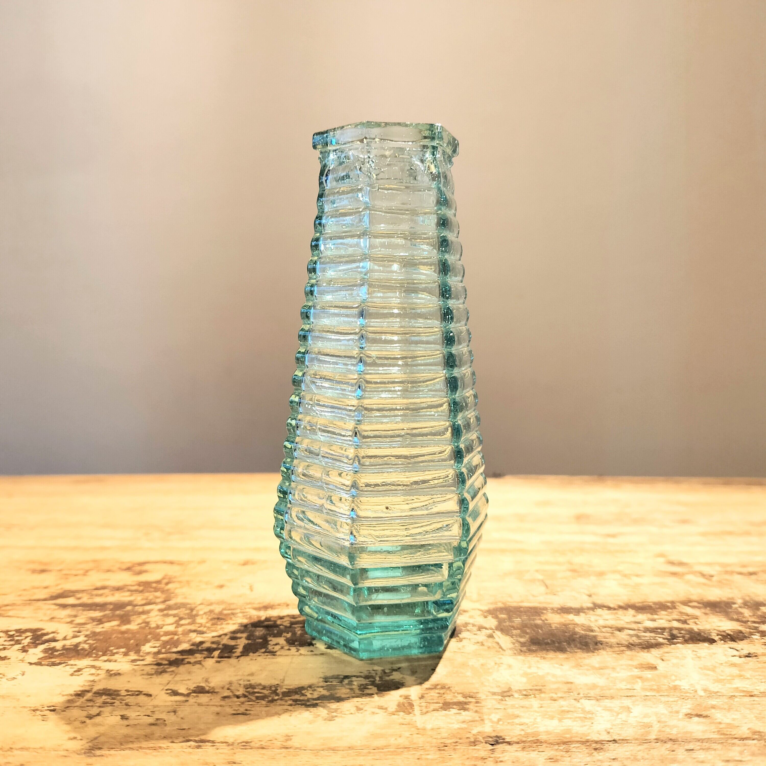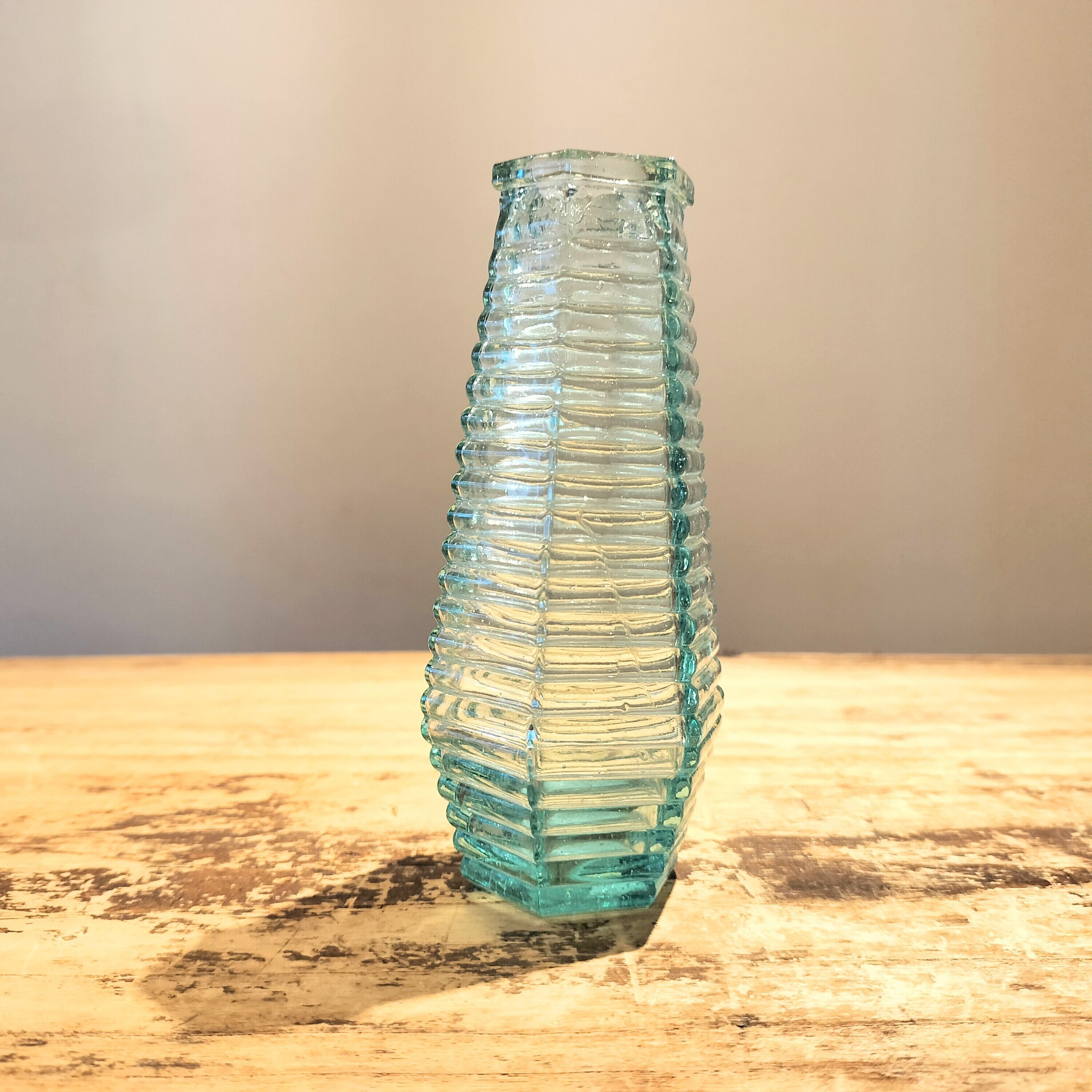 六角にカッティングされたガラスが積み重なってできたような、芸術的な花瓶。